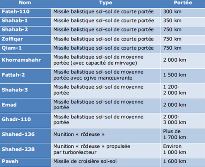 Sources : CSIS Missile Defense Project ; Federation of the American Scientists; The Begin-Sadat Center for Strategic Studies; entretiens avec des industriels de défense et des analystes du ministère des Armées